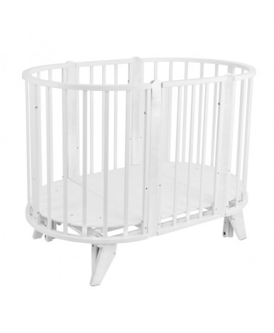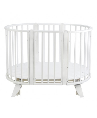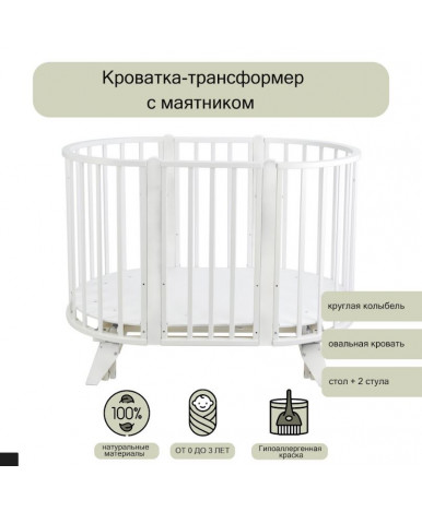 Детская кроватка «8 в 1». Кроватка выполнена из массива северной берёзы и МДФ. Закругленный края деталей не позволят Вашему малышу удариться. В первые месяцы жизни в круглой кроватке малыш чувствует себя очень комфортно! Семь вариантов трансформации позволяют использовать кроватку продолжительное время.