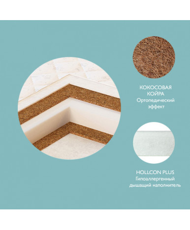 Жесткий ортопедический матрас на основе плиты из кокосового волокна идеально подойдет для новорожденных. Упругая латексированная кокосовая койра – 100% натуральный материал, который не деформируется в процессе использования матраса и обладает достоинствами идеального наполнителя: хорошо пропускает воздух, не вызывает аллергии, является прочным, эластичным и гигиеничным материалом. Чехол на молнии выполнен из натурального, 100% хлопка с оригинальными детскими рисунками. Этот детский матрас обеспечит правильное формирование позвоночника малыша и станет залогом здорового сна. Рекомендуется для детей от 0 до 3-х лет.