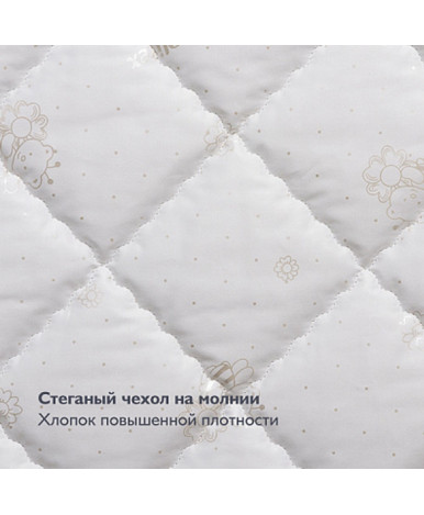 Стеганый чехол их хлопка высокой плотности оснащен 3D-сеткой по периметру для дополнительной вентиляции. Чехол съемный, на молнии, это позволяет легко снимать его для стирки и надевать обратно.