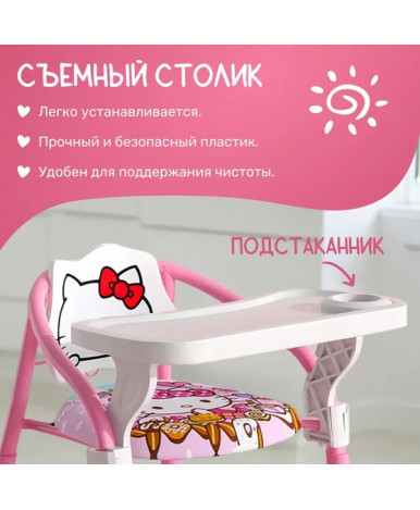 Детский стульчик для кормления представляет собой трансформируемую конструкцию 2 в 1, которая легко меняет конфигурацию со стульчика для кормления на отдельный детский стул. Такая особенность позволяет продлить срок использования изделия.