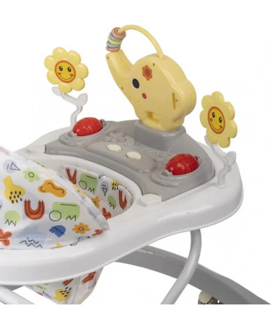 Модель Jumbo оснащена поворотными пластиковыми колесами, обеспечивающими легкость передвижения и маневренность. Ходунки регулируются по высоте в четырех положениях, позволяя адаптировать их под рост ребенка. Яркая съемная игровая панель с 10 веселыми мелодиями (питание от двух батареек АА, не входят в комплект) и тактильные элементы способствуют развитию моторики и слуха малыша. Чехол ходунков легко снимается и моется, обеспечивая гигиеничность использования. Подходят для малышей от 7 до 15 месяцев весом до 15 кг. Рекомендуется использовать ходунки не более 20 минут подряд.