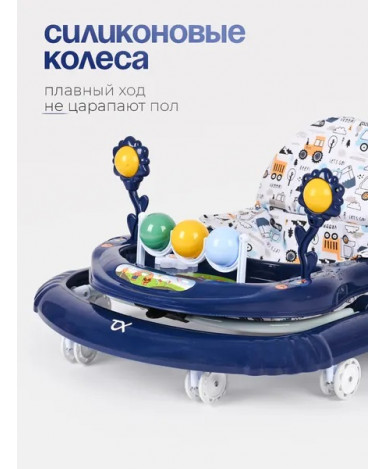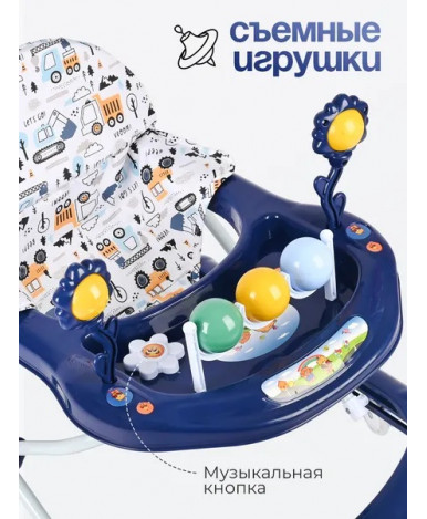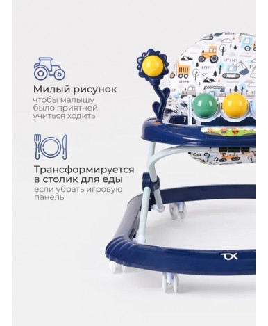Яркие ходунки с музыкальной игровой панелью понравятся активным малышам и их родителям. Возможность регулировки высоты ходунков позволяет выбрать нужное положение под рост ребенка. Мягкое сиденье с высокой спинкой обеспечивает комфорт. Ткань сиденья съемная, что упрощает уход за ходунками. Спереди ходунков располагается игровая панель с шариками-погремушками и музыкальной кнопкой. Посредством звуков кроха знакомится с миром. Ходунки компактно складываются и оснащены 8-ю пластиковыми колесами.
