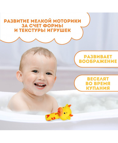 Игрушка для купания ТМ Крошка Я — отличный вариант для игр в воде: применяя различные сюжеты, малыш весело играя, развивает свой кругозор, а благодаря мягкому и гибкому материалу развивает моторику и тактильное восприятия.