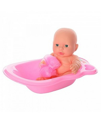 Милый малыш может принимать водные процедуры в своей любимой розовой ванночке. Набери теплой водички и добавь мыльного раствора, чтобы получить объемную пышную пену и посади малыша в водичку. А когда малютка станет чистым - вытри его полотенцем, одень пижамку и уложи в кроватку.