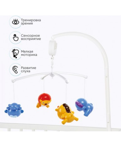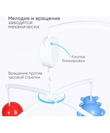 Для начала игры на музыкальном мобиле достаточно повернуть рычажок механического завода, и мелодия зазвучит, а подвесные игрушки начнут плавно вращаться, создавая волшебную атмосферу. Малыш будет наблюдать за движением игрушек и слушать приятные звуки, что поможет ему расслабиться и уснуть.