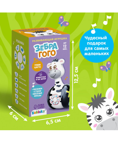 Игрушка называет 10 цветов, воспроизводит 5 стихов, 4 фразы, песенки по одному куплету. Есть счёт до 10.