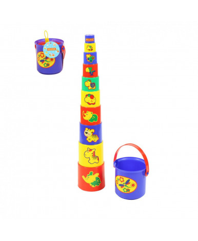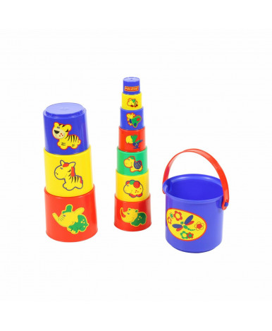 Она позволяет малышу изучить животных, позволит выстроить стройную башню, играть со множеством ярких стаканчиков, прятать различные предметы.