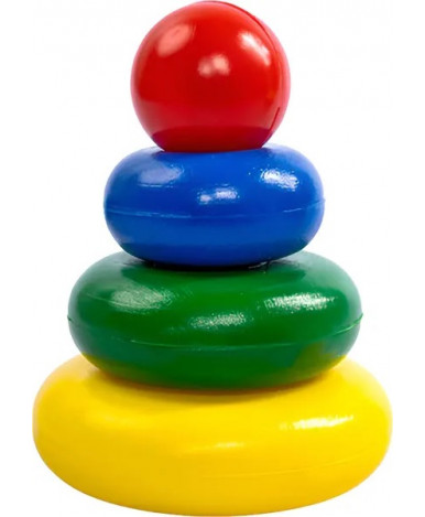 Яркая красочная пирамидка привлечет внимание малыша, ему понравится новая веселая игра с одеванием колечек. Если даже ребенок не научится правильно собирать пирамидку с первого раза, то со временем у него обязательно начнет получаться. Небольшое число колец в пирамидке упростит задачу маленькому исследователю.