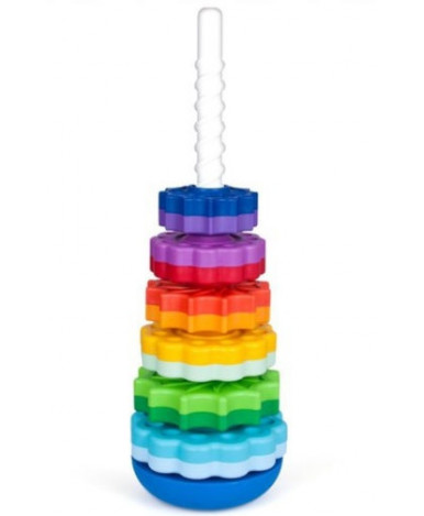 Общая информация об изделии: Развивающая пирамидка, состоящая из 6 двойных колец разного цвета, которые при кручении по стирали увлекают радужными переходами. Материал, из которого изготовлена продукция по данным производителя: Полипропилен, суперконцентрат (краситель) Материал, из которого изготовлена индивидуальная упаковка изделия: Блистерная упаковка, вкладыш (бумага) Комплектность изделия с указанием количества: основа - 1 шт., спираль - 1 шт., кольцо - 6 шт.