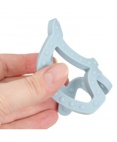 Прорезыватель снимает неприятные ощущения у малыша в период появления первых зубов. Также изделие подготовит ребёнка к процессу жевания, поспособствует формированию правильного прикуса и развитию мелкой моторики рук.