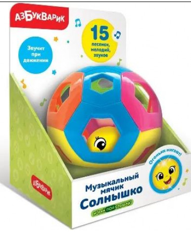 Музыкальный мячик «2 в 1» — маленький мячик в большом! Звучит и светится яркими огоньками при движении!Катай игрушку — слушай веселые песенки и мелодии («Давай играть и не скучать», «Догони», «Прятки», «Трик-трак» и др.).А еще мячик говорит и смеется! Яркая игрушка поднимет настроение ребенку на весь день. Игры с мячиком развивают тактильные ощущения, двигательную активность, музыкальные способности.