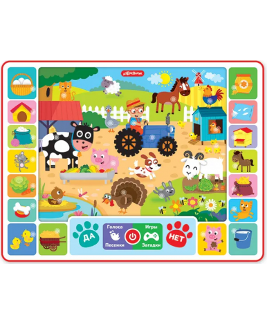 «Играем на ферме» — это не просто обучающий говорящий планшетик, это настоящая интерактивная ферма для детей! В нем ребенок найдет 6 игровых режимов, более 100 вопросов и заданий и 30 веселых песенок.