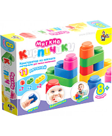 Одиннадцать крупных деталей нашего мягкого конструктора «Мягкие кирпичики» позволяют построить из них несложную конструкцию, но отнюдь не это является его главным достоинством, ведь это конструктор для самых маленьких, скорее всего это первый конструктор Вашего крохи. Детали должны быть удобны для детской ручки, не скользящими, легко соединяться друг с другом, не вызывая раздражения ребенка и так же легко разъединяться. Они должны быть достаточно тяжелыми, чтобы нагружать кисти рук и в то же время они должны быть травмобезопасными.