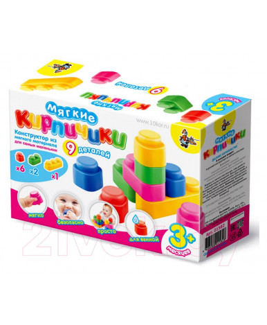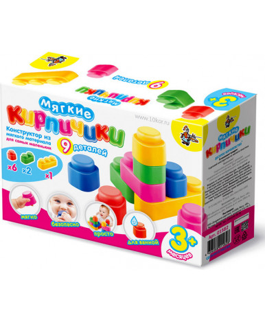 Кирпичики имеют яркие и насыщенные цвета, а на ощупь – мягкие и бархатистые, без острых углов, что делает игру с ними полностью безопасной для ребёнка.