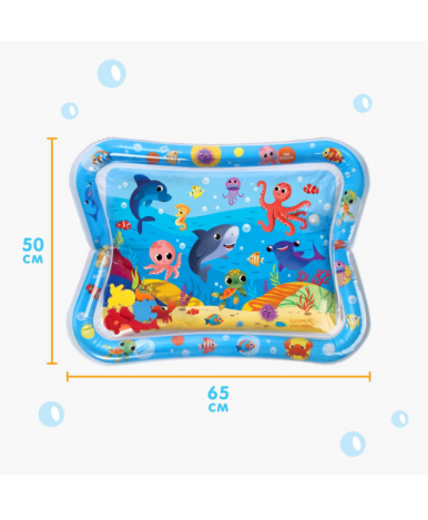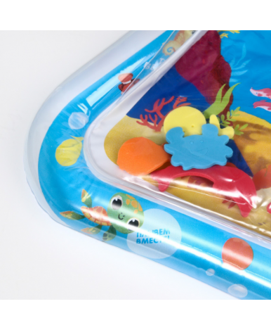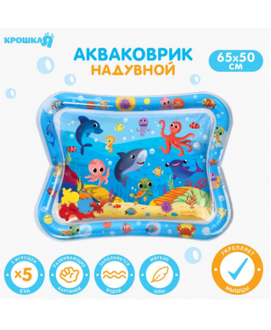 Внутри развивающего акваковрика находятся игрушки, которые будут плавать после заполнения водой резервуара. Ребёнок будет стараться достать до водных обитателей, таким образом тренируя координацию, мелкую моторику, хватательный рефлекс. А во время ползания по коврику мышцы малыша будут развиваться и усиливаться.