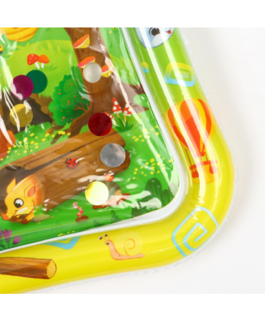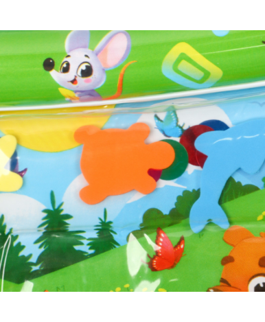 Внутри развивающего акваковрика находятся игрушки, которые будут плавать после заполнения водой резервуара. Ребёнок будет стараться достать до водных обитателей, таким образом тренируя координацию, мелкую моторику, хватательный рефлекс. А во время ползания по коврику мышцы малыша будут развиваться и усиливаться.