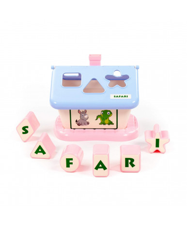 Дополнительно в наборе предусмотрены различные геометрические фигурки (6 шт.). Крыша сооружения содержит отверстиями разной формы, к которым детям предстоит подобрать фигуры из набора, используя игрушку как сортер. Элементы крыши подымаются вверх, что позволяет легко доставать фигурки.