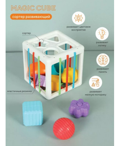 Сортер развивает: логику, память, мышление, мелкую моторику, координацию движений, цветовое восприятие.