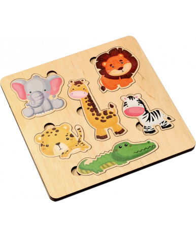 Деревянный пазл «Дикие животные» — это простая развивающая игра для малышей от 3-х лет.