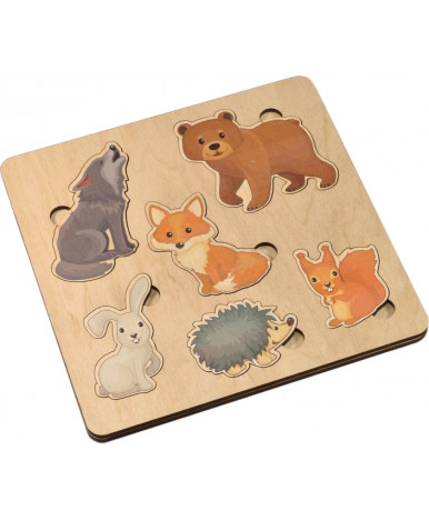 Деревянный пазл «Лесные животные» — это простая развивающая игра для малышей от 3-х лет.