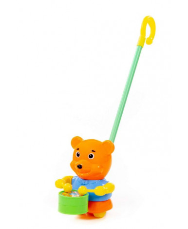 Каталка «Медвежонок» - игрушка для малышей, которые уже научились самостоятельно ходить! Игрушку можно толкать вперёд или возить за собой, удерживая за длинную ручку. Каталка помогает малышам совершенствовать навыки ходьбы и координацию движений. Красочная и звонкая каталка привлечёт внимание ребёнка - во время движения медвежонок стучит палочками по барабану. Продается каталка в сеточке.