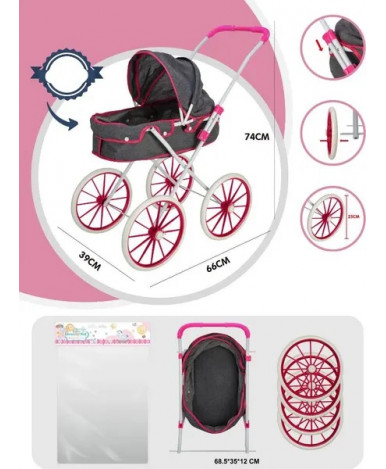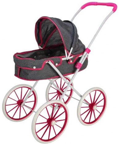 Маштабированная копия детской универсальной коляски с большими прорезиненными колёсами.