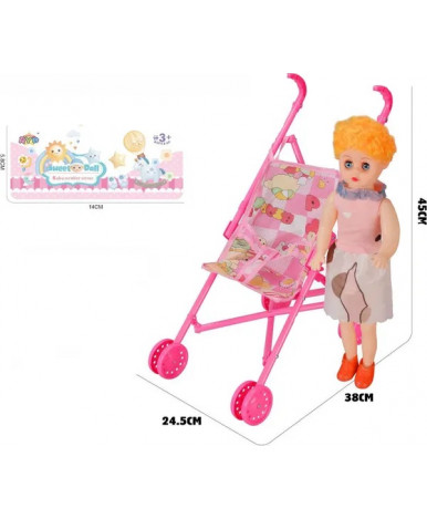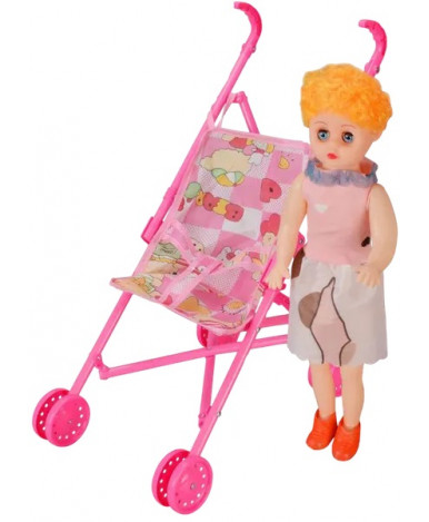 Маштабированная копия детской прогулочной коляски с двойными колёсами + кукла в комплекте.