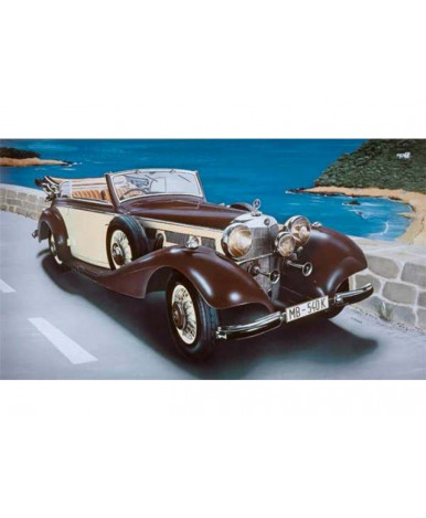 инструкция с кратким историческим описанием, схемой сборки и окраски модели автомобиля Merseges Benz 540K на английском языке.