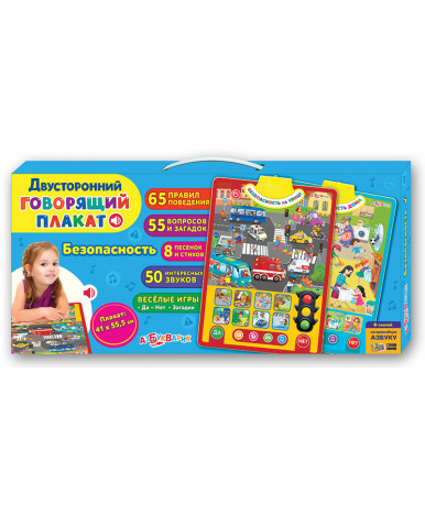 Правила безопасности важно знать всем детям. С этим двусторонним плакатом дети смогут изучить их в легкой игровой форме, нажимая на яркие говорящие картинки. Первая сторона – «Безопасность на улице», вторая – «Безопасность дома». Рассматривай забавные ситуации, изучай правила дорожного движения, слушай песенки, стихи и полезные советы от Саши и Даши.