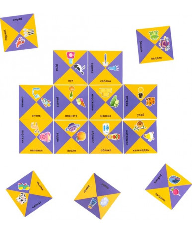 Задача ребенка — составить из половинок целые фрагменты и прочитать название.