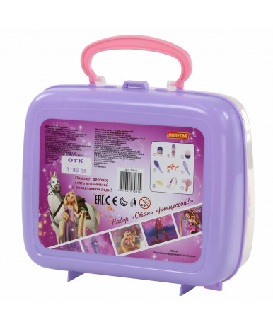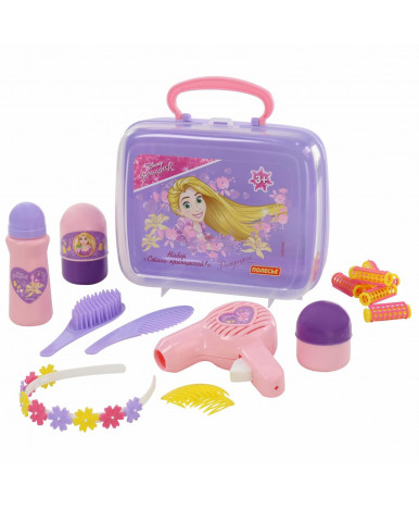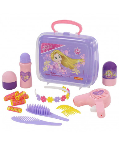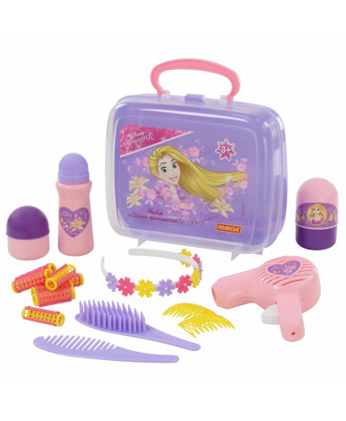 Набор упакован в чемоданчик-шкатулку, в который юная модница может поместить и другие свои аксессуары для волос. Набор Disney "Рапунцель" - "Cтань принцессой!" позволит девочке организовать свой салон красоты или парикмахерскую, придумывать новые образы и прически, развивая воображение и фантазию!