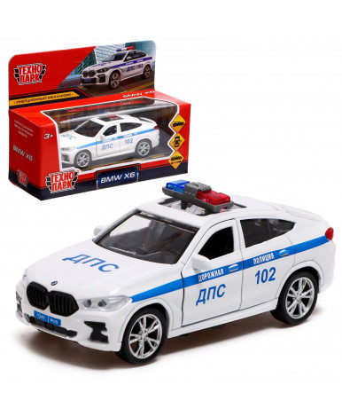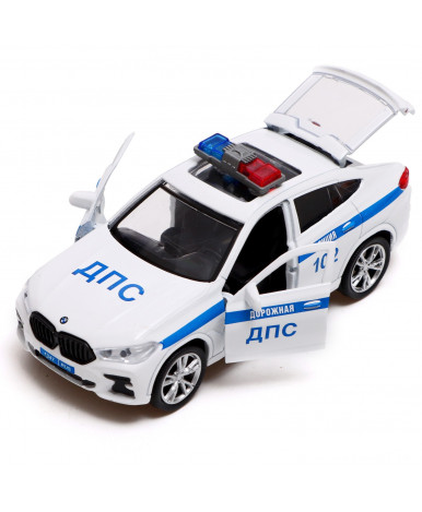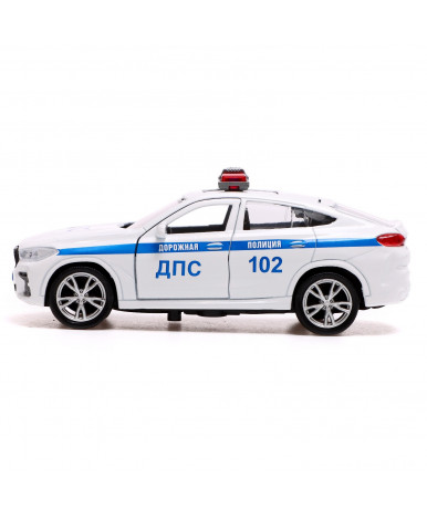 Лицензионная модель: точное воспроизведение BMW X6 с полицейской символикой. Классический белый цвет с синей полосой.