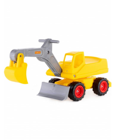 Мега-экскаватор колёсный от фабрики «Полесье» выполнен из высококачественного пластика. На экскаватор ребенок может садиться как на каталку. Сиденье экскаватора поворачивается на 360°. С помощью рычагов малыш самостоятельно может управлять стрелой и ковшом экскаватора. Кроме того, экскаватор оснащен съёмной лопатой-грейдером, которой можно выравнивать поверхность в песочнице. Игра с Мега-экскаватором колесным прививает первоначальные трудовые навыки, знакомит с принципами работы некоторых механизмов, развивает координацию движений и пространственное мышление.