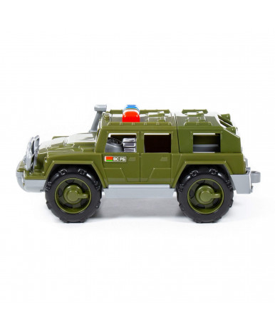 Серия автомобилей «Защитник» от фабрики «Полесье» выполнена в соответствии с реальными аналогами военной техники. Автомобиль-джип военный патрульный "Защитник" изготовлен в защитном зелёном цвете, имеет вместительный багажник с тентом (тент съёмный), надежный бампер и на крыше автомобиля установлены красно-синие проблесковые маячки. Также предусмотрен шноркель - выведенный на уровень крыши автомобиля воздухозабор двигателя.