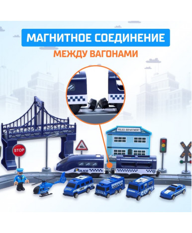 Железная дорога «Экспресс» — это настоящий полицейский локомотив, во главе которого ваш малыш будет мчаться на место происшествия. Помочь юному герою в спасении мира и борьбе со злом помогут четыре машинки и вертолёт, а фигурка в виде полицейского станет главным помощником в управлении поезда. Игрушка представляет собой модель современной железной дороги, что поможет ребёнку не только увлекательно провести время, но и расширить свой кругозор.