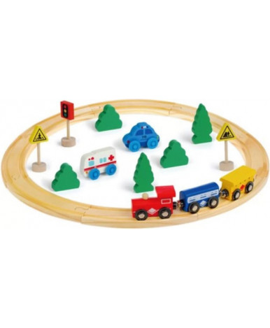 Развивающая игра «Железная дорога» такая интересная, что обязательно станет одним из любимых увлечений малыша! В наборе есть 8 деталей, из которых малышу предстоит собрать железнодорожный путь, а также поезд, состоящий из локомотива и 2-х вагонов, которые крепятся друг к другу с помощью магнитов, 2 машинки — скорая помощь и полиция, 5 деревьев и 3 дорожных знака.Катая паровозик по железной дороге, ребёнок будет развивать мелкую моторику рук, логику и воображение.