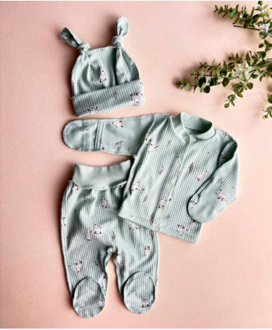 В набор входит: кофточка,ползунки,шапочка