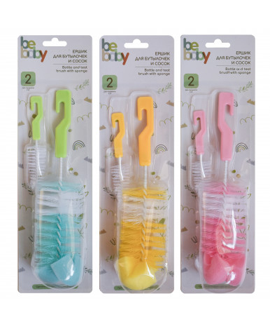 Ершик для бутылочек + ершик для сосок (зеленый, желтый, розовый)