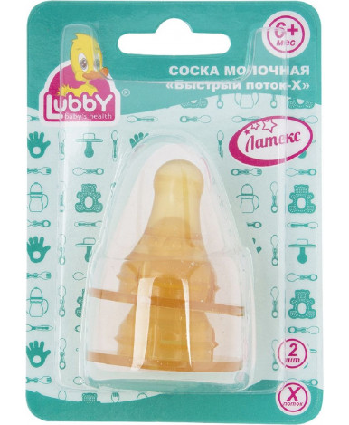 Соска «LUBBY» предназначена для использования в комплекте со стандартными бутылочками различных форм при кормлении малыша. На каждой упаковке указаны размеры соски, которые помогут выбрать изделие в соответствии с возрастом Вашего младенца: S – для детей до 3-х месяцев, M – для детей от 3-х до 6 месяцев, L – для детей старше 6 месяцев, Х - для густой пищи. Помните, что ссылки на возраст приблизительны, так как сроки развития малышей различны. Соска изготовлена из прочного, высококачественного латекса.