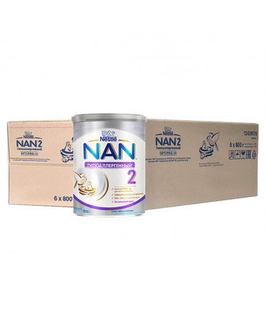 NAN® Гипоаллергенный 2 OPTIPRO® HA гипоаллергенная смесь, предназначенная для кормления здоровых детей с рождения в случаях, когда грудное вскармливание невозможно. Она обеспечивает Вашего ребенка всеми нутриентами, необходимыми для его гармоничного физического и умственного развития. Клинически доказано, что специально разработанная смесь NAN® Гипоаллергенный 2 OPTIPRO® HA уменьшает риск развития аллергии, в частности атопического дерматита, в первые решающие годы жизни. Однако ее не следует использовать без консультации врача, если Ваш малыш уже имеет аллергию на белки коровьего молока. Введение другой смеси, а также коровьего молока, должно применяться под наблюдением медицинского работника. OPTIPRO® HA это оптимизированный, частично гидролизированный белковый комплекс, полученный по специальной технологии. Он имеет значительно сниженную аллергенность и, как результат, уменьшает риск развития аллергии. Живые бифидобактерии BL помогают тренировать и развивать иммунную систему Вашего малыша. DHA и ARA две особые жирные кислоты, присутствующие в грудном молоке, играют важную роль в становлении иммунной системы малыша и способствуют развитию мозга и зрения. ВАЖНОЕ ПРИМЕЧАНИЕ Идеальной пищей для грудного ребенка является молоко матери. Грудное вскармливание должно продолжаться как можно дольше. Перед тем как принять решение об искусственном вскармливании с использованием детской смеси, обратитесь за советом к медицинскому работнику. Возрастные ограничения указаны на упаковке товаров в соответствии с законодательством РФ. Смесь NAN® Гипоаллергенный 2 OPTIPRO® HA предназначена для кормления здоровых детей с рождения в случаях, когда грудное вскармливание невозможно. Продукт изготовлен из сырья, произведенного специально отобранными поставщиками, без использования генетически модифицированных ингредиентов, консервантов, красителей и ароматизаторов. состав:
