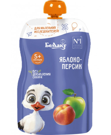 Пюре Беллакт Яблоко, персик рекомендовано для введения в рацион в качестве прикорма детям с 5 месяцев.