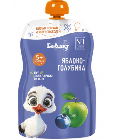 Пюре Беллакт Яблоко, голубика рекомендовано для введения в рацион в качестве прикорма детям с 5 месяцев.