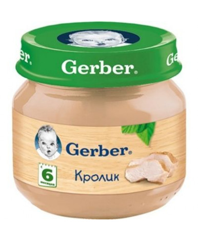 Мясное пюре Gerber «Кролик» 80 г. для питания детей старше 6 месяцев. ВАЖНОЕ ПРИМЕЧАНИЕ: идеальной пищей для грудного ребенка является молоко матери. Всемирная организация здравоохранения рекомендует исключительно грудное вскармливание в первые шесть месяцев и последующее введение прикорма при продолжении грудного вскармливания. Компания Нестле поддерживает данную рекомендацию. Для принятия решения о сроках и способе введения данного продукта в рацион ребенка необходима консультация специалиста. Мясо кролика очень легко, и в то же время отличается высоким содержанием белка, чтобы поддержать малыша в период активного роста. Крольчатина богата разнообразными минеральными веществами, витаминами группы В и витамином РР, а значит, позволит вам организовать сбалансированный рацион питания. Деликатный вкус и гомогенизированная консистенция пюре из мяса кролика хорошо воспринимаются малышами на этапе первого мясного прикорма. Пюре обладает нежной текстурой и консистенцией, и является гипоаллергенным продуктом. Пюре изготовлено без использования генетически модифицированных ингредиентов, искусственных консервантов, красителей и ароматизаторов. Состав: пюре из мяса кролика (62 %), вода (31%), кукурузный крахмал, низкоэруковое рапсовое масло, концентрированный лимонный сок. Пищевая ценность (сред. состав на 100 г): энергетическая ценность - 111 ккал / 465 кДж; белки - 12,4 г; углеводы - 3 г; жиры - 5,5 г. Условия хранения: до вскрытия хранить при температуре от 6 до 30?. Открытую банку хранить в холодильнике не более 24 часов. Внимание! Не использовать продукт, если при открывании не произошло щелчка. Срок годности: Дата изготовления, срок годности см. на крышке. Начните кормление с 1 чайной ложки, постепенно увеличивая объем. Гомогенизированное. Стерилизованное. Готово к употреблению.