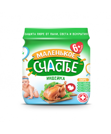 Консервы из мяса индейки Маленькое счастье рекомендованы для введения в рацион малышей с 6 месяцев.