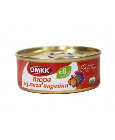 Состав: мясо индейки, вода питьевая, масло подсолнечное, крупа рисовая (4%), соль йодированная.