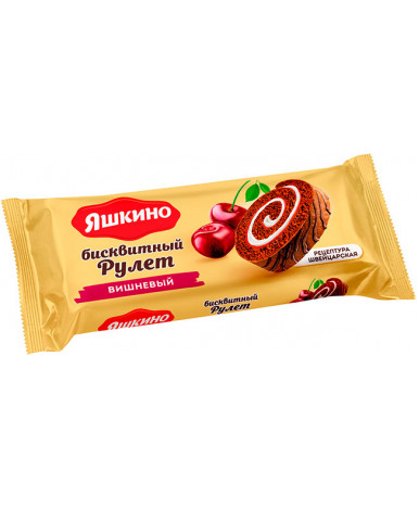 Шоколадный бисквитный рулет из пышного бисквитного теста с нежной кремовой прослойкой и ароматной начинкой из вишневого джема. Бисквитный рулет украшен глазурью.
