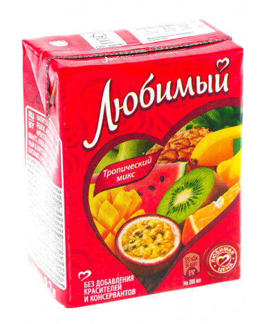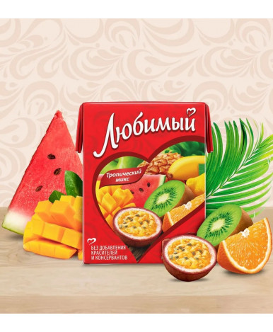 Нотки терпкого киви, бархатистого банана, тропической маракуйи, сочного ананаса, спелого манго и бодрящего апельсина в сокосодержащем напитке "Любимый. Тропический микс". Яркий микс экзотических фруктов. "Любимый" - почувствуй вкус любви!