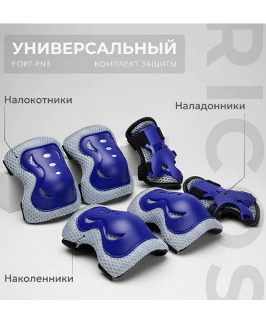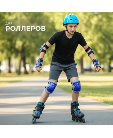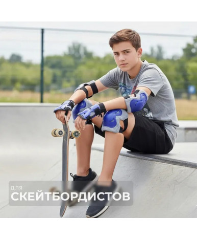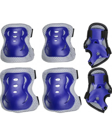 Комплект защиты создает безопасные условия для катания на роликах и скейтборде. Набор включает налокотники, наколенники и наладонники. Трехслойное утолщенное строение обеспечивает всестороннюю защиту. Сочетание синего цвета с серыми и черными элементами делает экипировку заметной во время движения.