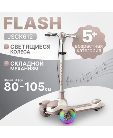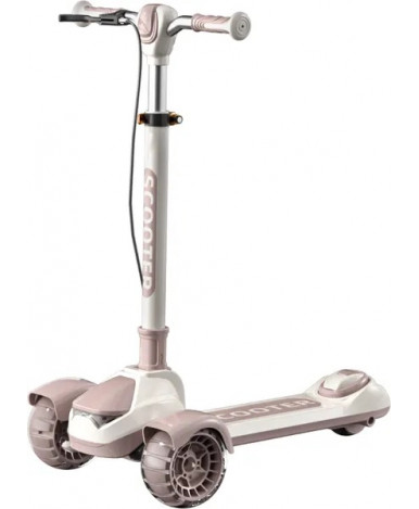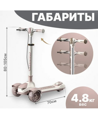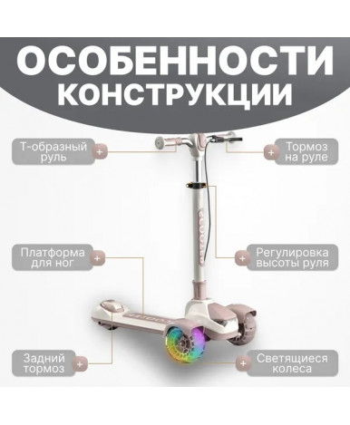 Детский самокат с тремя колесами подходит для детей от 5 лет. Рама из нейлона сочетает легкость и прочность, а бежевый цвет с коричневыми элементами делает модель универсальной и современной.