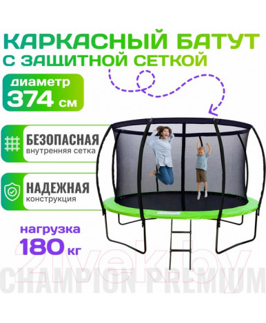 Батут Champion Premium-D374 с ограждением — отличный способ провести время на улице, улучшить физическую форму и координацию. Устройство подойдет для семейного досуга, спортивных игр и тренировок. Благодаря продуманной конструкции и качественным материалам, батут обеспечивает безопасность и удовольствие от активности на открытом воздухе.